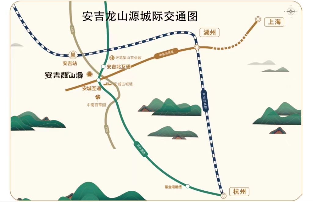 上海虹桥站 → 湖州/安吉站(高铁约40-60分钟) → 园区接送服务(约40分钟)